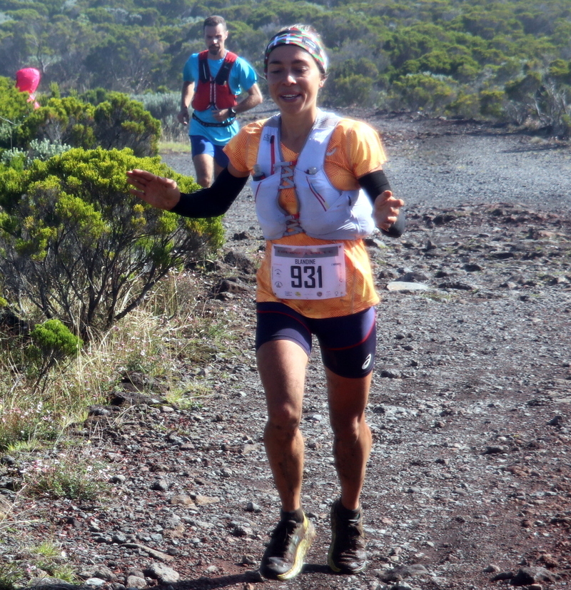 Blandine L’Hirondel sur les sentiers de la Course Tangue en Janvier 2020 et qui signe une belle victoire pour son bref retour à la Réunion